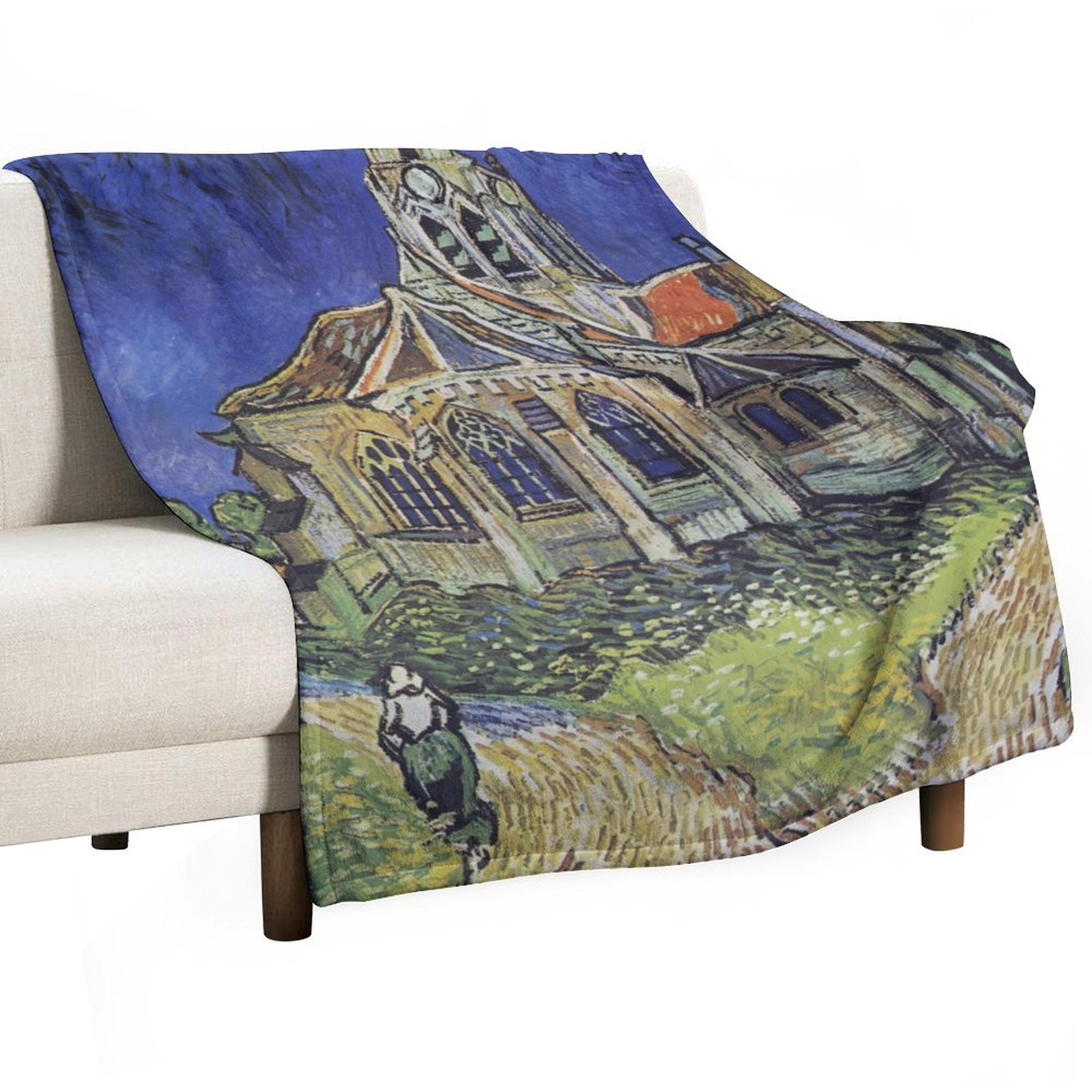 Van Gogh's <The Church at Auvers> Art Blanket: Retro Humanistic Gift for Architectural Art Enthusiasts