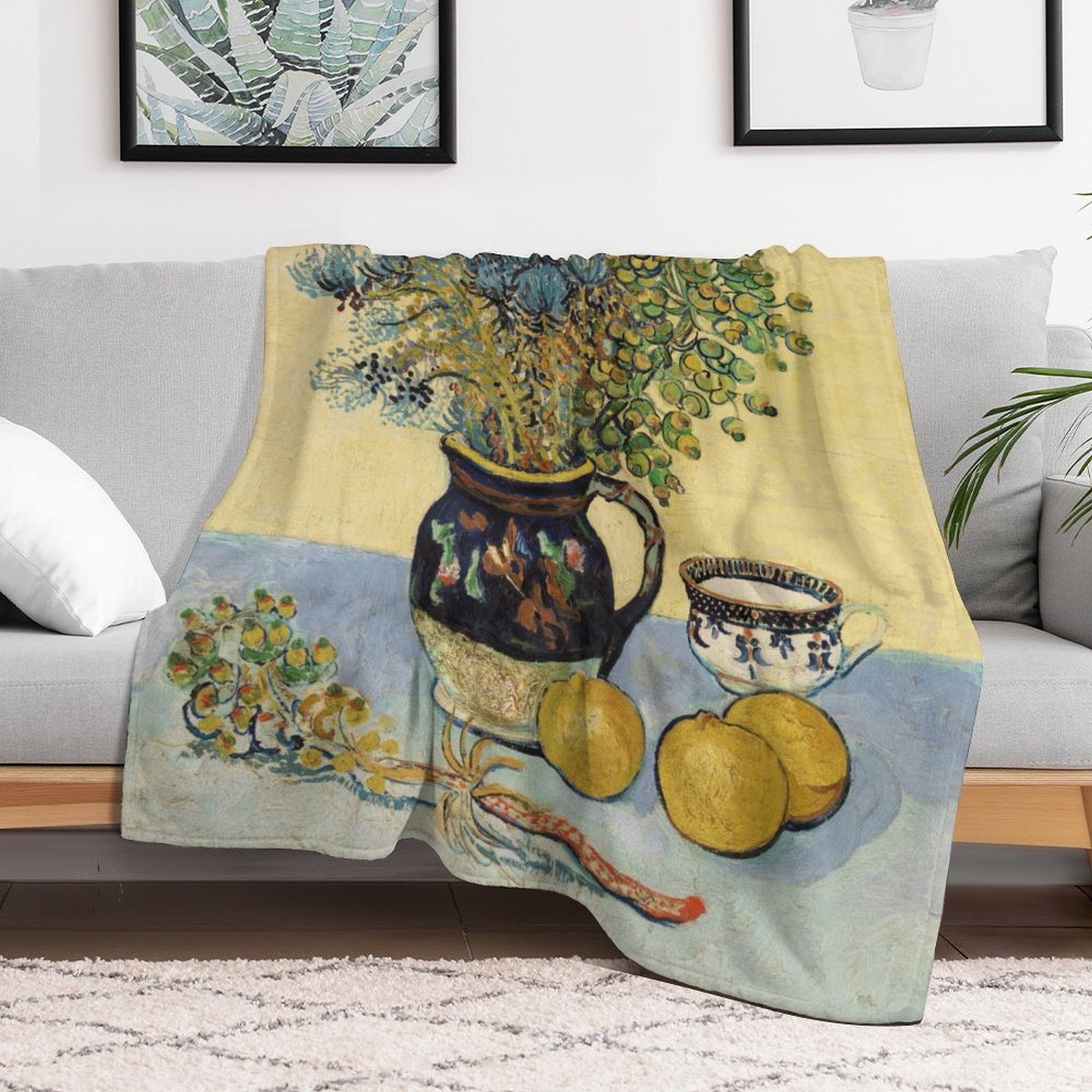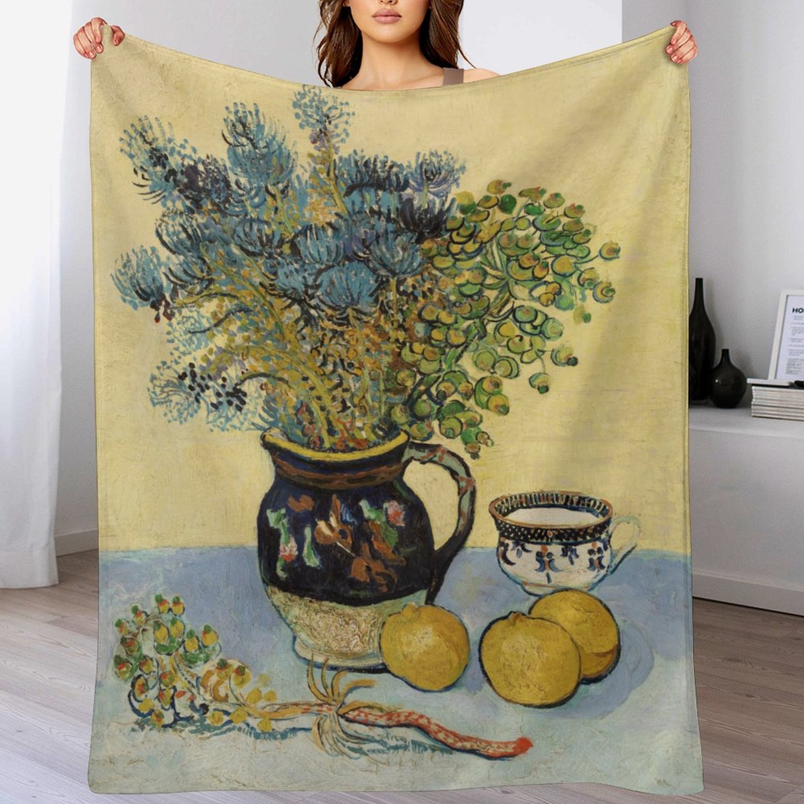 Van Gogh's <Still Life with Flowers and Lemons> Art Blanket: Elegant Gift for Still Life Art Enthusiasts