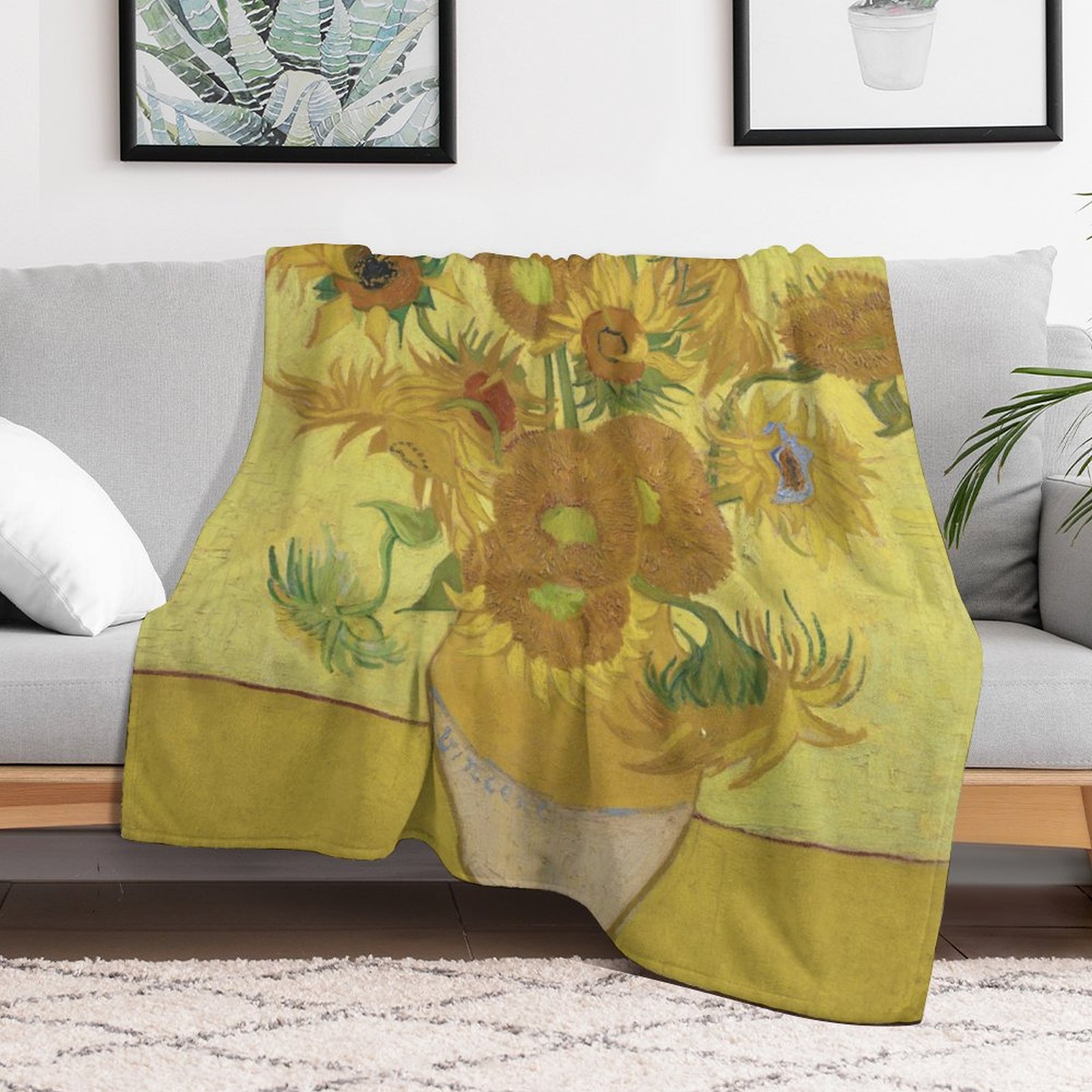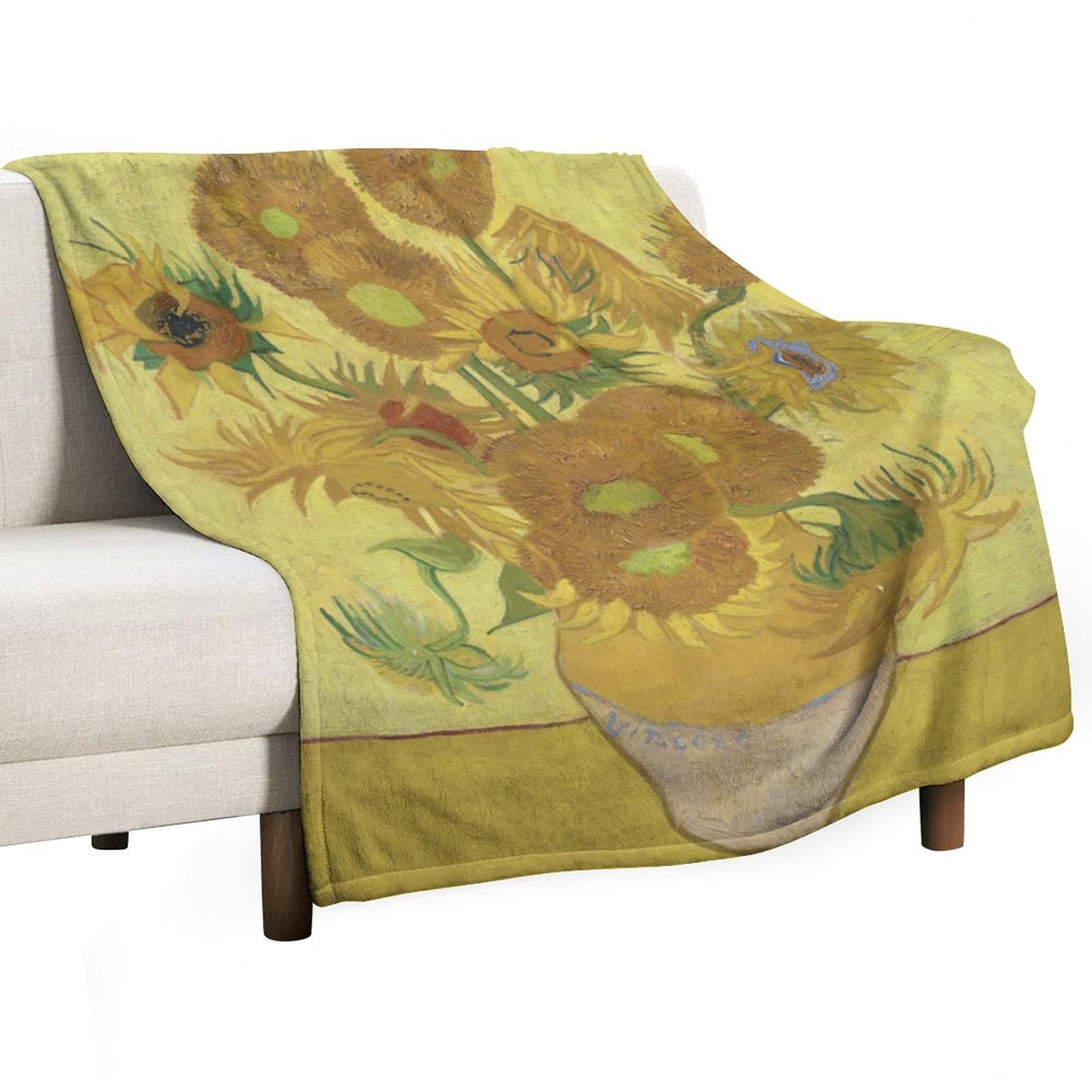 Van Gogh's <Vase with Fifteen Sunflowers> Art Blanket: Dynamic Aesthetic Gift for Art Enthusiasts