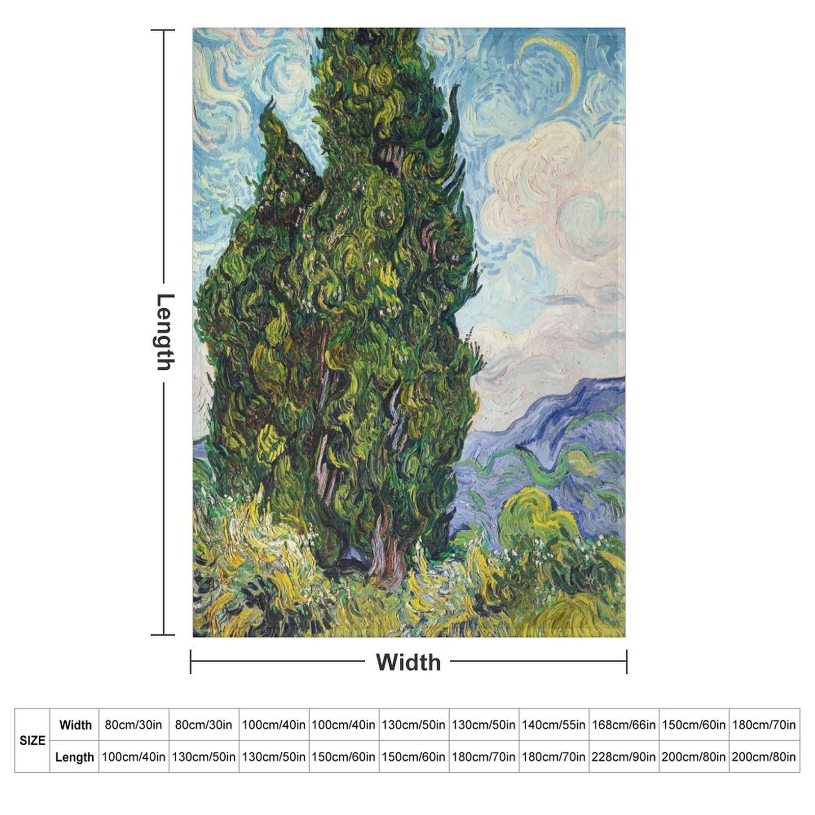 Van Gogh's <Cypresses> Art Blanket: Poetic Gift for Nature Art Enthusiasts